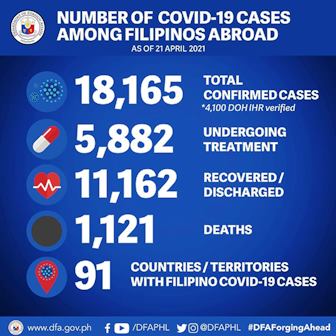 Pumalo na sa 18,165 ang kaso ng Covid-19 sa hanay ng mga Filipino sa ibang bansa.