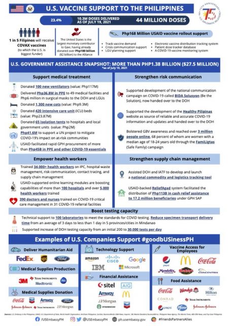 COVID-19 assistance ng US gov’t sa Pilipinas, umabot na sa P1.38-B