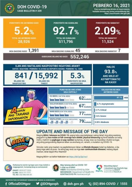 COVID-19 cases sa bansa umabot na sa 552 libo
