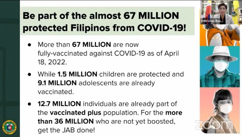 Kaugnay nito, sinabi ni Vergeire na umabot na sa 67 milyon ang fully vaccinated sa bansa.