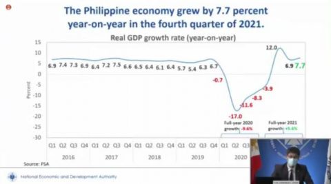 Sa buong 2021, umabot sa 5.6 percent ang kabuuang GDP o paglago ng ekonomiya.