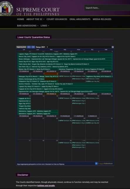 Para makita ang kumpletong quarantine status ng mga lower courts sa bansa ay bisitahin lamang ang website ng Korte Suprema na sc.judiciary.gov.ph.
