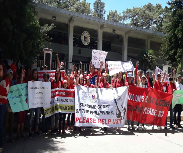 Sinabi ni Robin Coteng, organizer ng grupo, na magta- tatlong taon na ang protesta ay wala pa ring desisyon dito ang Korte Suprema na umuupo bilang Presidential Electoral Tribunal.