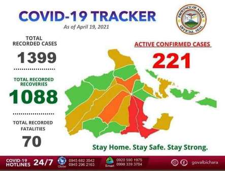 Sa kabuuan, umabot na sa 1,399 Covid-19 cases sa lalawigan at nasa 221 ang aktibong kaso.