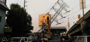 Umabot ang apoy sa tower ng NGCP na nagresulta naman ng pagbagsak nito at pagharang sa naturang kalsada.